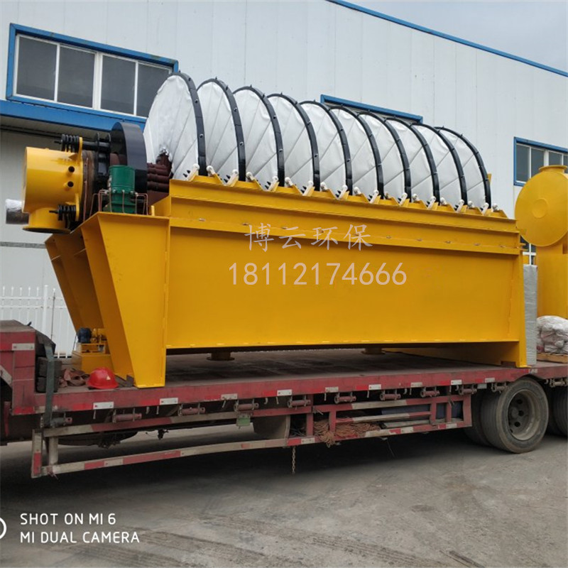 PG系列盤(pán)式真空過(guò)濾機(jī) (1)扇形濾板脫水孔分布均勻,孔率合理,筋條尺寸大,由高強(qiáng)度工程塑料制成,壽命提高了2-3倍。 (2)濾液管過(guò)濾數(shù)面大,分配頭腹腔容積大,提高了抽氣率和濾液排放效果。 (3)耐磨錦綸、單或復(fù)絲濾布使脫餅率高且不易堵塞,使用壽命長(zhǎng)。 (4)多點(diǎn)干油泵集中多點(diǎn)自動(dòng)潤(rùn)滑。 (5)濾布自動(dòng)清洗裝置,保持了其良好的脫水效果。 (6)臥式強(qiáng)制高速攪拌、軸端采用橡膠及石墨盤(pán)根和水壓差三重密封不漏漿。 (7)主傳動(dòng)無(wú)級(jí)變速,依物料的濃度及流量調(diào)節(jié)(交流調(diào)速電機(jī)或變頻器),以求達(dá)到理想的工作效果 。 (8)每盤(pán)由20片扇形板組成,加強(qiáng)了過(guò)濾過(guò)程控制,成餅厚度均勻。 (9)磨擦片采用特制耐磨硼鑄鐵,剛?cè)嵯酀?jì)密封佳,使用壽命達(dá)到十年以上。 (10)濾液管為高強(qiáng)度耐磨陶瓷復(fù)合鋼管,提高壽命10倍以上。 (11)濾液管與濾扇接口去掉下法蘭,采取模具定位直接焊接,減少了90%可能的漏氣點(diǎn)。