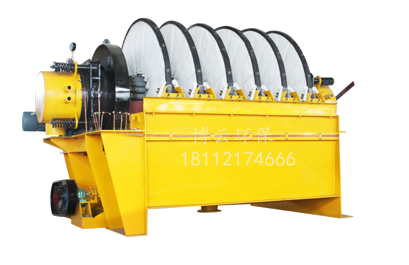PG系列盤式真空過濾機 (1)扇形濾板脫水孔分布均勻,孔率合理,筋條尺寸大,由高強度工程塑料制成,壽命提高了2-3倍。 (2)濾液管過濾數面大,分配頭腹腔容積大,提高了抽氣率和濾液排放效果。 (3)耐磨錦綸、單或復絲濾布使脫餅率高且不易堵塞,使用壽命長。 (4)多點干油泵集中多點自動潤滑。 (5)濾布自動清洗裝置,保持了其良好的脫水效果。 (6)臥式強制高速攪拌、軸端采用橡膠及石墨盤根和水壓差三重密封不漏漿。 (7)主傳動無級變速,依物料的濃度及流量調節(交流調速電機或變頻器),以求達到理想的工作效果 。 (8)每盤由20片扇形板組成,加強了過濾過程控制,成餅厚度均勻。 (9)磨擦片采用特制耐磨硼鑄鐵,剛柔相濟密封佳,使用壽命達到十年以上。 (10)濾液管為高強度耐磨陶瓷復合鋼管,提高壽命10倍以上。 (11)濾液管與濾扇接口去掉下法蘭,采取模具定位直接焊接,減少了90%可能的漏氣點。